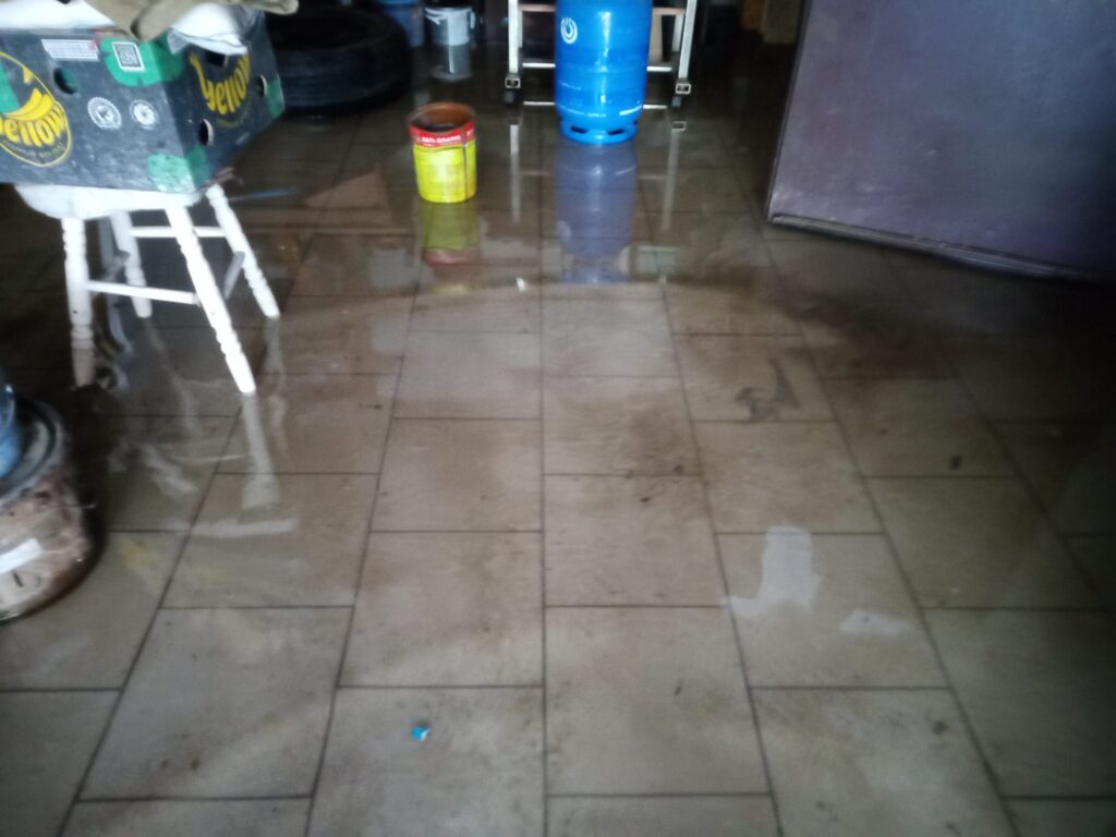 Stojąca woda całkowicie zniszczyła podłogi, drzwi, futryny, szafki kuchenne, duży sprzęt AGD, meble, których z uwagi na gabaryty nie można było przenieść na wyższy poziom, piec znajdujący się w kotłowni, sprzęt roboczy i urządzenia warsztatowe znajdujące się w garażu.
