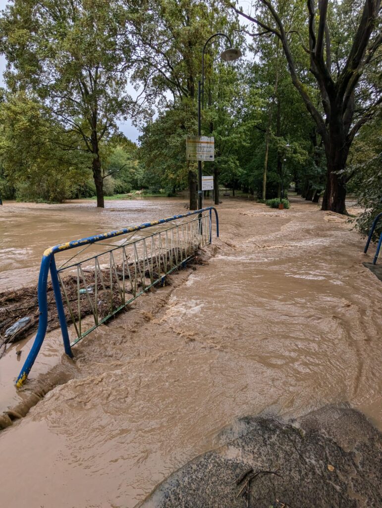 Woda w domu rodziny Pani Dwornickiej stała dwa dni. Nie można jej było wypompować z uwagi na brak odpowiedniego sprzętu i wysoki poziom wód podskórnych. Ciśnienie tej wody całkowicie podniosło i wyrzuciło ponad powierzchnię gruntu całą konstrukcję (zbiornik) przydomowej oczyszczalni ścieków i uszkodziło doprowadzone do niej przyłącza wraz z pompą i zasilaniem.