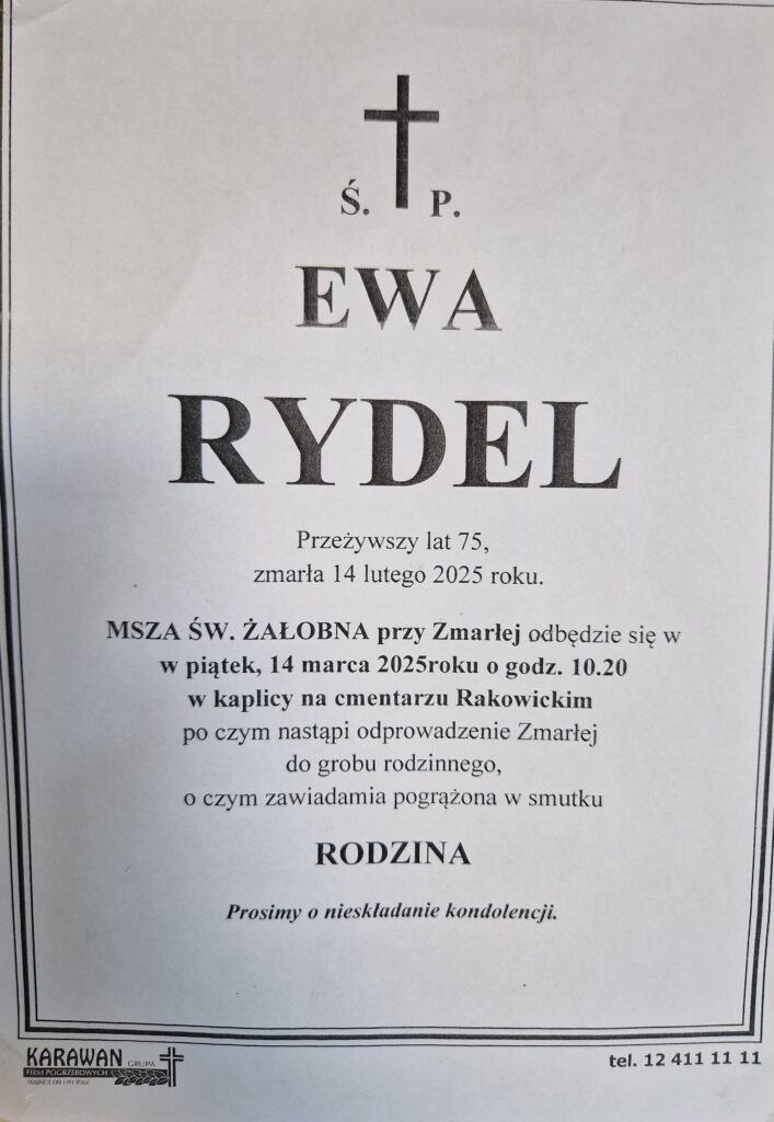 Zmarła Ewa Rydel Z głębokim żalem informujemy, że zmarła Ewa Rydel, była pracowniczka Instytutu Technologii Maszyn i Automatyzacji Produkcji Wydziału Mechanicznego Politechniki Krakowskiej (obecnie Katedra Inżynierii i Automatyzacji Produkcji).