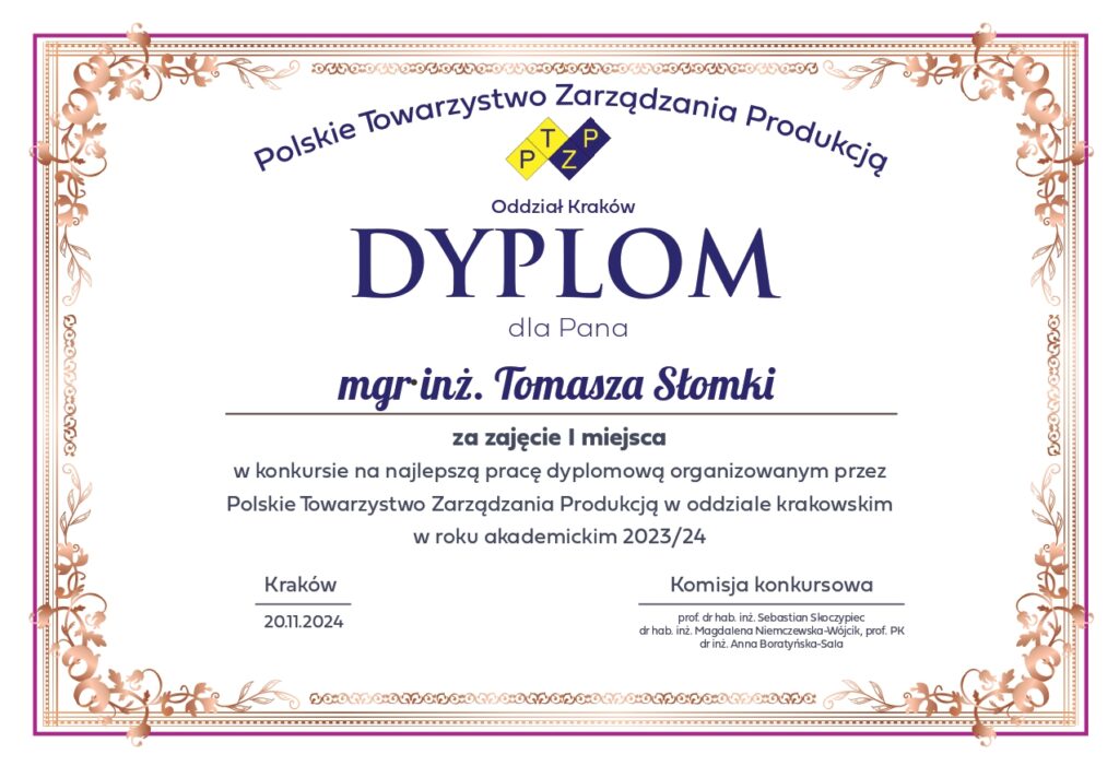 Absolwent Inżynierii Produkcji zwycięzcą konkursu Polskiego Towarzystwa Zarządzania Produkcją