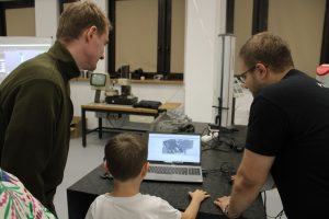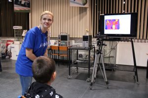 Jak zwykle ogromnym powodzeniem cieszyło się stanowisko do samodzielnego robienia hydrożeli, a doświadczenia dotyczące osadzania kropel na różnych powierzchniach również było oblegane przez amatorów eksperymentowania. Sympatycy wirtualnej rzeczywistości mieli aż 3 stanowiska VR do wyboru, można było pobawić się kamerą termowizyjną i zobaczyć kaskadę chłodniczą. Starsi Uczestnicy mogli w tym czasie pozwiedzać laboratorium z maszynami pomiarowymi i zaglądnąć do tomografu przemysłowego.