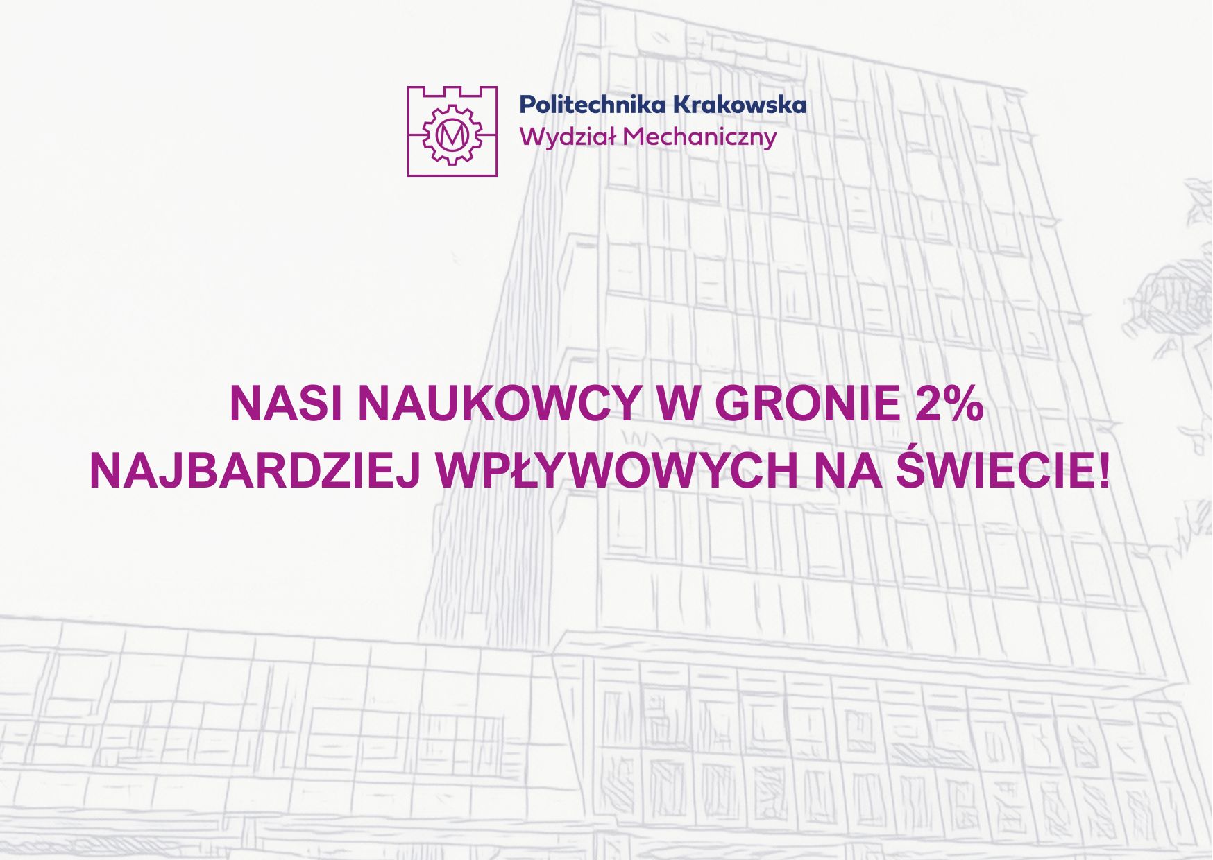 Naukowcy Wydziału Mechanicznego Politechniki Krakowskiej znaleźli się w najnowszym rankingu World’s TOP 2% Scientists 2025, przygotowanym przez Uniwersytet Stanforda i Wydawnictwo Elsevier. To prestiżowe zestawienie obejmuje 2% badaczy na świecie, których publikacje są najczęściej cytowane przez innych autorów.