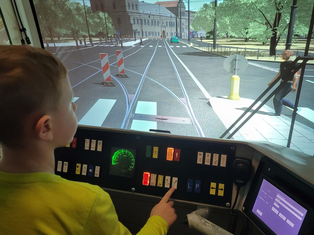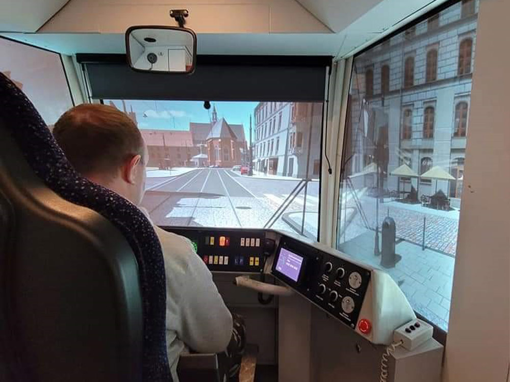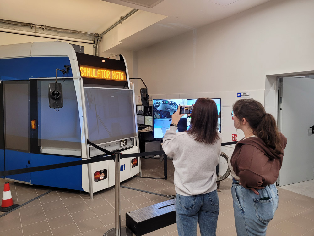 Studenci na pokładzie symulatora zapoznają się z budową, eksploatacją oraz zasadami sterowania pojazdu szynowego, a także działaniem otaczającej pojazd infrastruktury w ruchu miejskim.