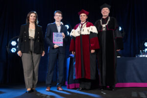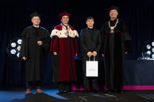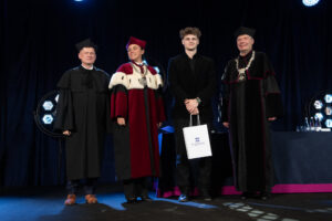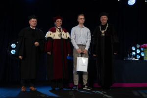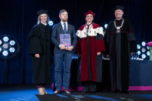 Kolejnym punktem programu było wręczenie nagród laureatom i uczestnikom Uczelnianej Sesji Kół Naukowych 2025, które poprowadzili prof. Bogdan Szybiński – prodziekan ds. ogólnych oraz dr Anna Boratyńska-Sala, pełnomocnik dziekana ds. kół naukowych.