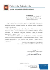 - Dr hab. inż. Grzegorz Tora, prof. PK – za największą liczbę uzyskanych patentów.
