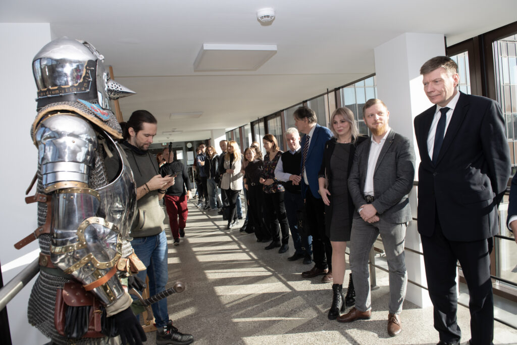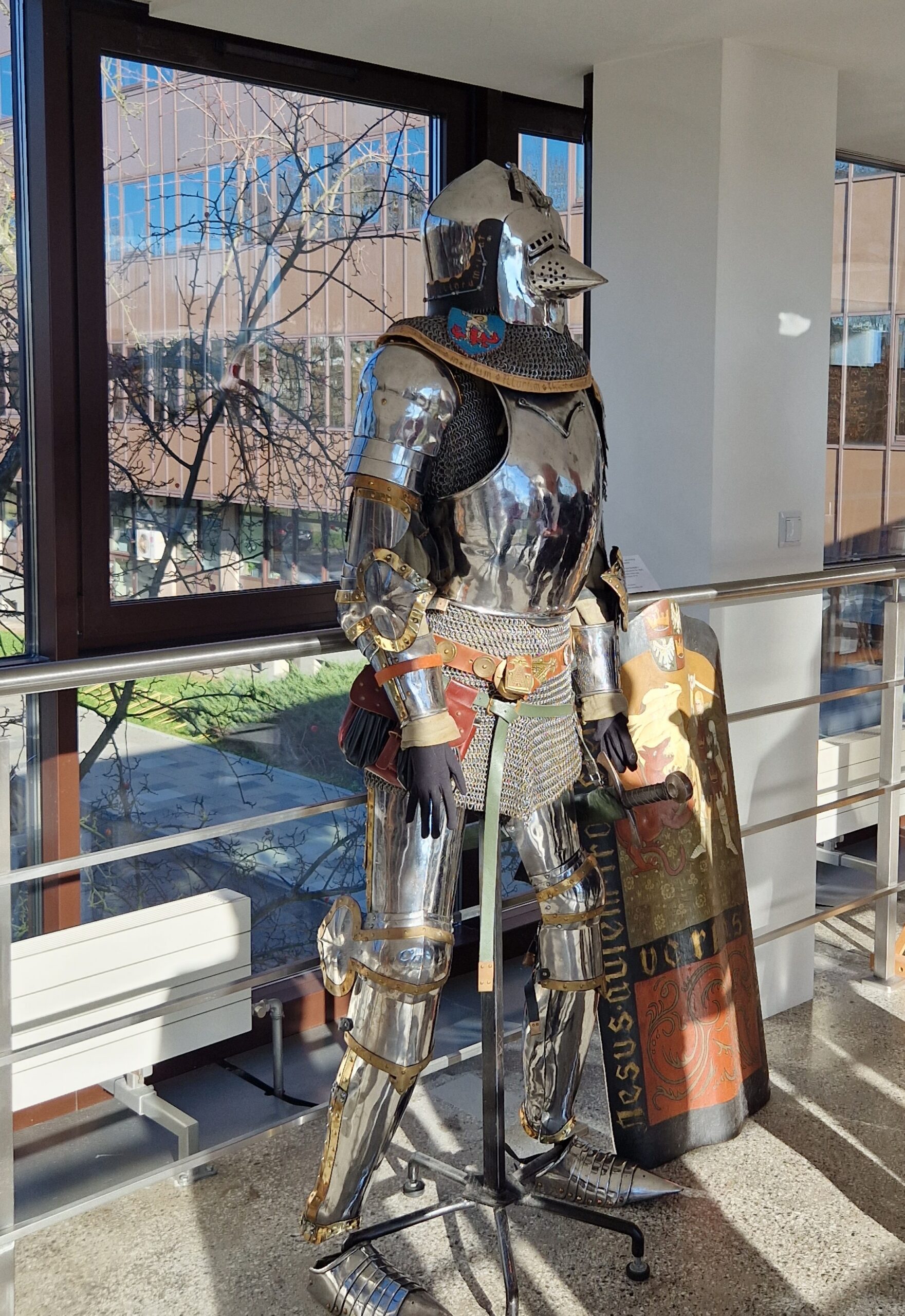 • naturalnych rozmiarów rekonstrukcja XV-wiecznej zbroi Lorda Williama Bardolph’a. Dr Augustyn Lorenc odtworzył ją na podstawie płyty nagrobnej z Dennington Church w hrabstwie Suffolk – z dbałością o detale, jakiej nie powstydziłby się muzealny warsztat.