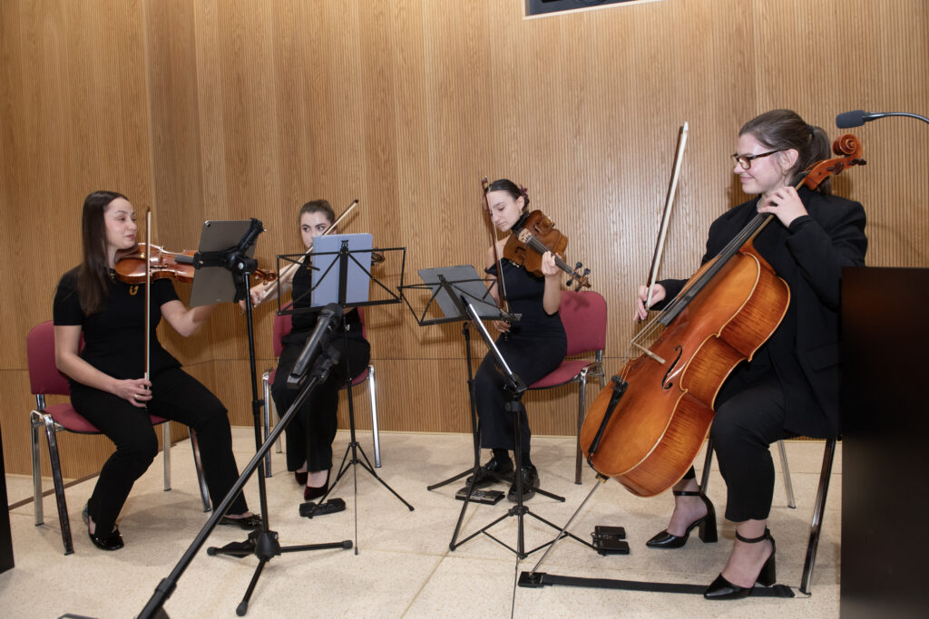 Po wernisażu wszyscy zaproszeni Goście przeszli do Auli C04, gdzie zabrzmiała muzyka Beethovena, Szostakowicza i Mendelssohna, wykonana przez Meraviglia String Quartet pod kierunkiem prof. Renaty Żołobowskiej-Orzechowskiej, z Akademii Muzycznej im. K. Pendereckiego w Krakowie. Artystki w osobach Emilii Leśniak, Marii Wojnowskiej, Julii Kaliś oraz Zofii Kupiec wykonały interpretacje następujących utworów: