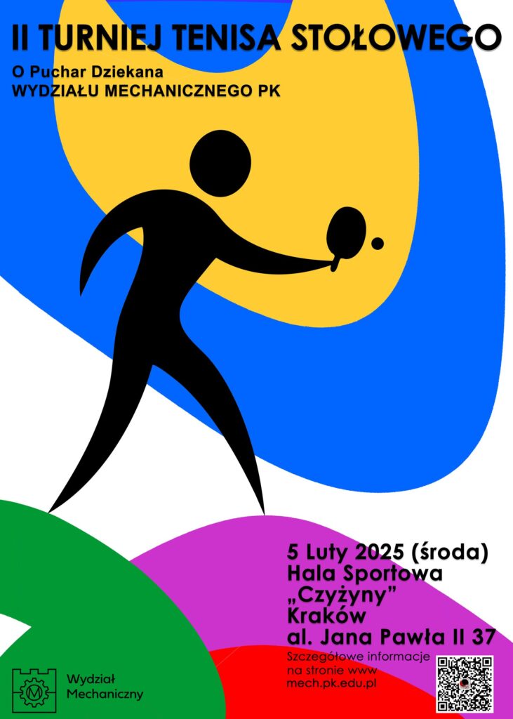 Wydział Mechaniczny PK oraz Centrum Sportu i Rekreacji zapraszają serdecznie wszystkie pracowniczki i pracowników PK do udziału w II Turnieju Tenisa Stołowego o Puchar Dziekana Wydziału Mechanicznego.
